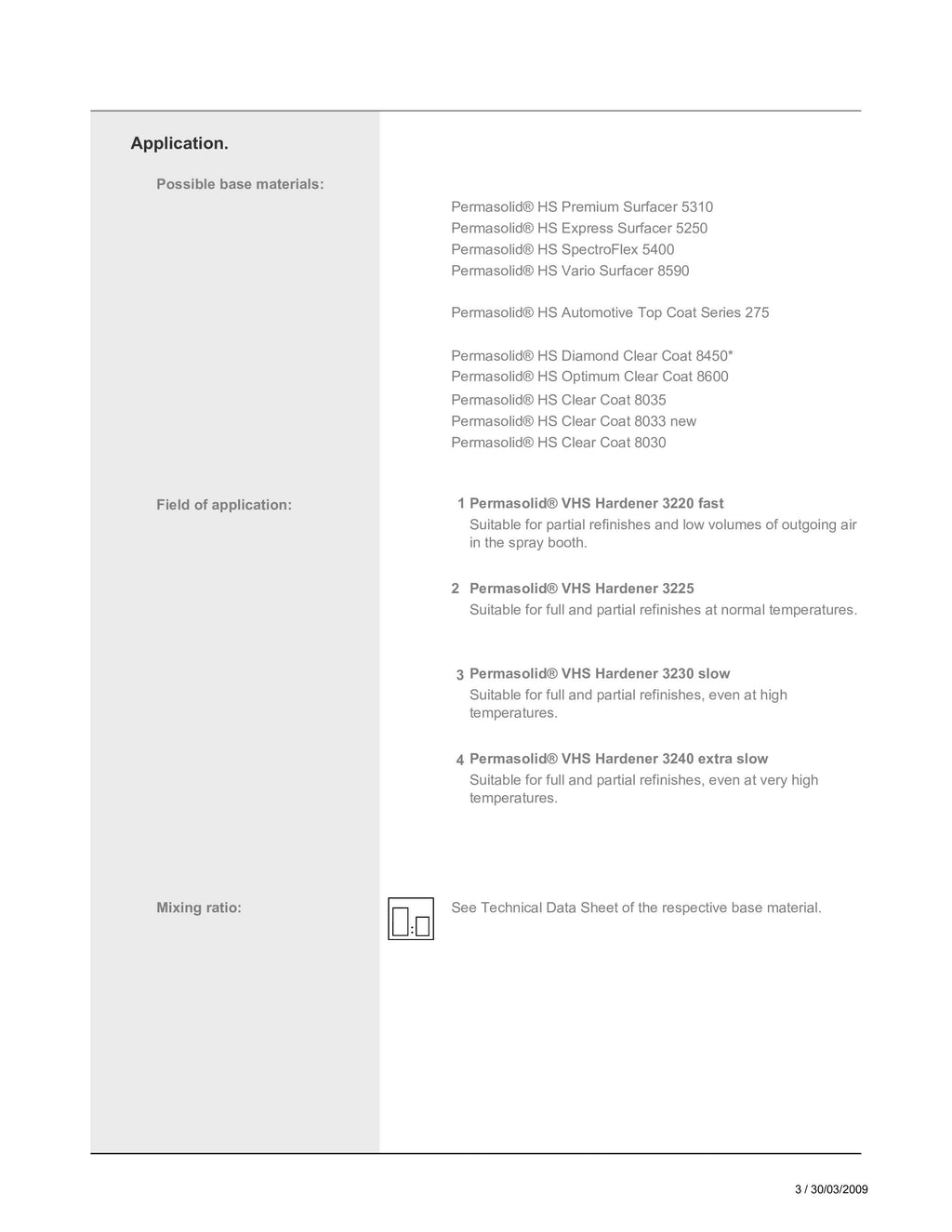 Permasolid VHS Hardeners are the hardeners specially developed for our High-Solid products. Their high solids content allows for economical and eco-friendly application. Having four versions means that all painting conditions can be optimally catered for and highly reliable application is guaranteed.