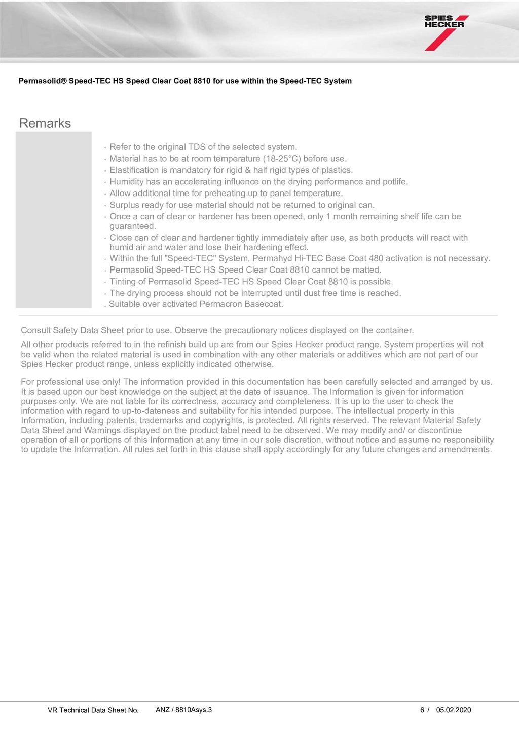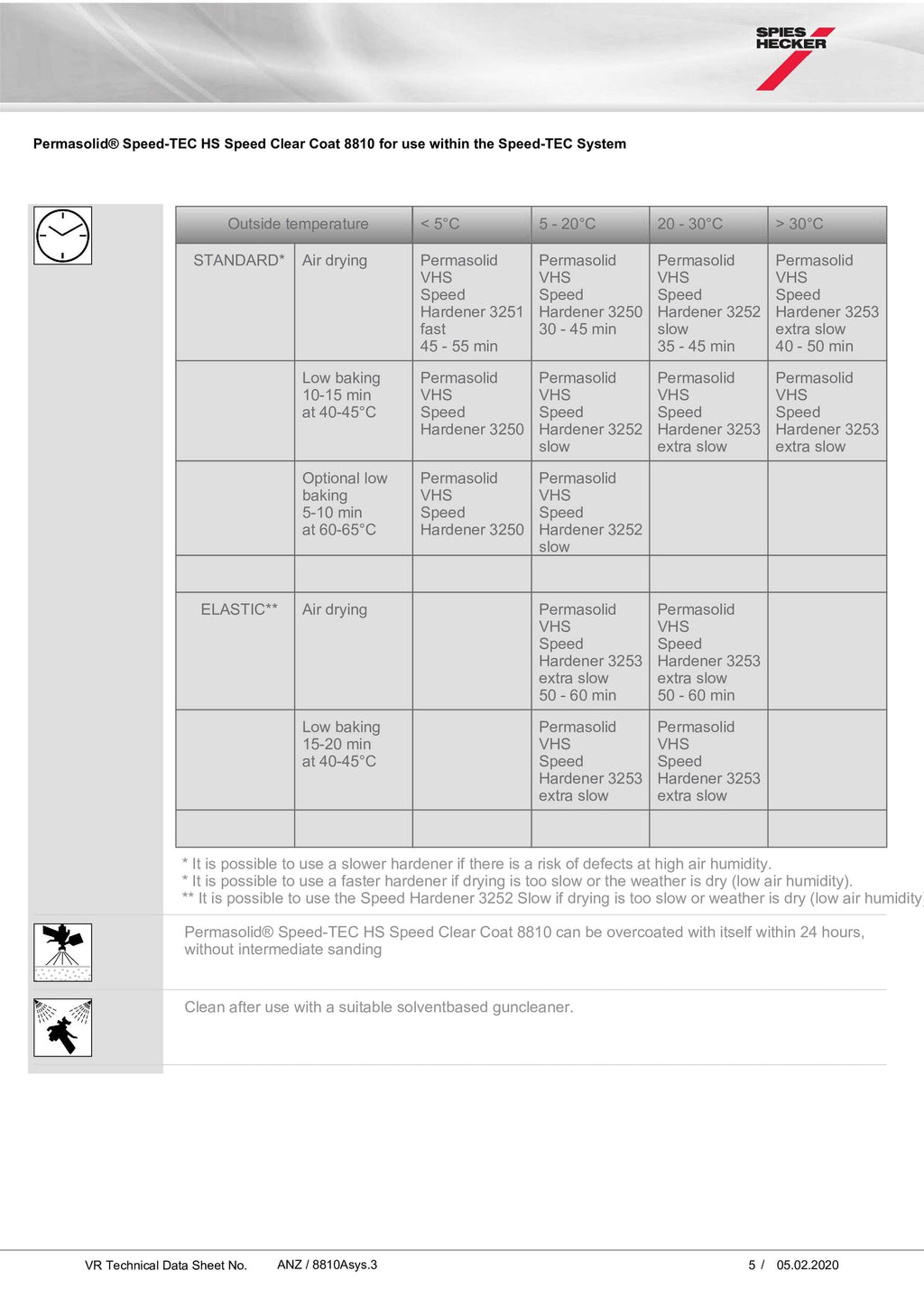 - No need to harden Hi-TEC Base Coat 480 when applied on Speed-TEC Surfacer 5500 / Speed-TEC Wet-on-Wet Surfacer 5550.