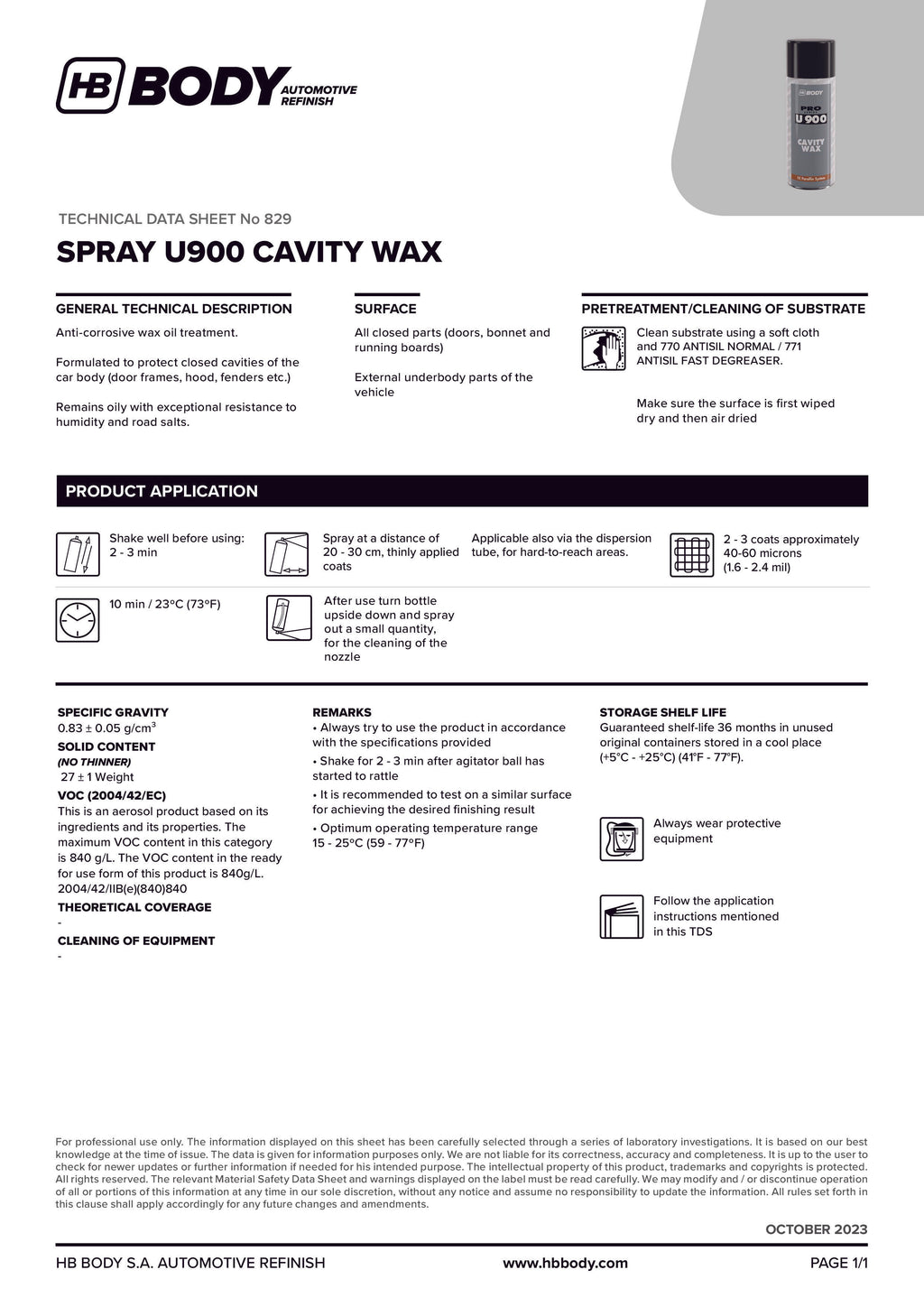 A special anticorrosive Cavity Wax oil treatment with sound deadening properties. Can be applied to all closed parts (doors, bonnet, and running boards (chassis) and the external underbody of the vehicle. Penetrates easily and is resistant to high temperatures. Suitable for application after the paint procedure.