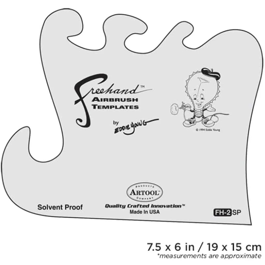 Artool #2 Freehand Airbrush Template by Eddy Young. Precision, laser cut templates for highly detailed effects. Solvent Proof mylar construction: great with both solvent and water based paints. Easy to clean. Create your favorite effects with Artool.