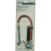 This tyre Inflator & Gauge is designed to monitor tyre air pressure. It has a capacity to measure 10 to 120lb pressure. This gauge has an aluminium body and brass valve, chrome-plated steel nozzle and 6 Inch dual head chuck. It features 1/4 Inch N.P.T air inlet connection.
